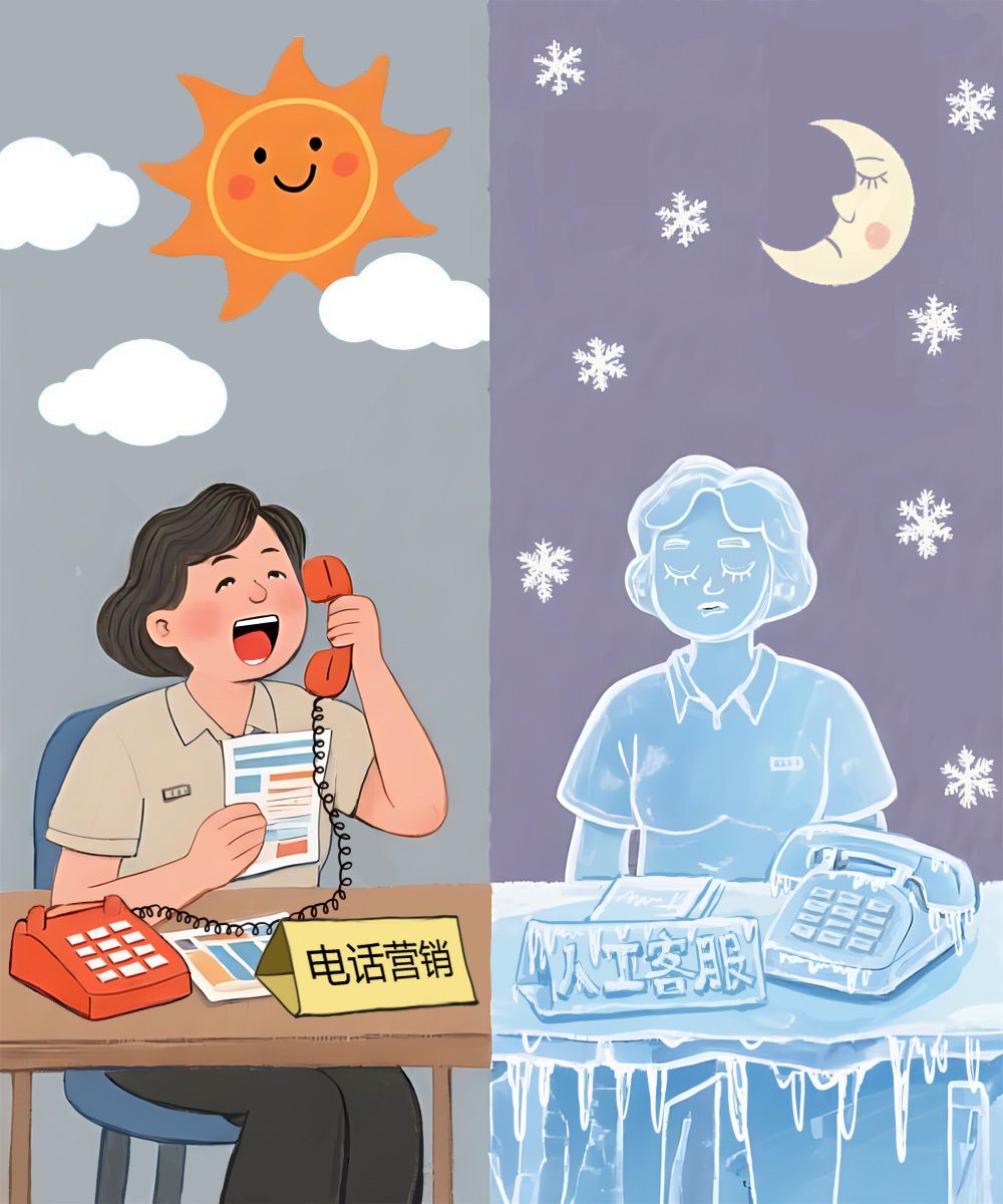 这种“一冷一热”的现象,折射出个别通信企业畸形的服务理念。营销人员把死缠烂打当作热情,将信息不对称视为技巧,却忘记了服务的本质是满足用户需求。当热情只停留在推销阶段,而无法延续到售后服务时,这种“选择性热情”终将消磨用户信任。(图/蒋立冬 文/与归 实习生 魏羿莼)