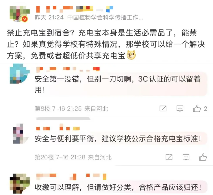 对此,不少网友认为,消防安全是大事,但应做好分类,合格充电宝需及时归还↓