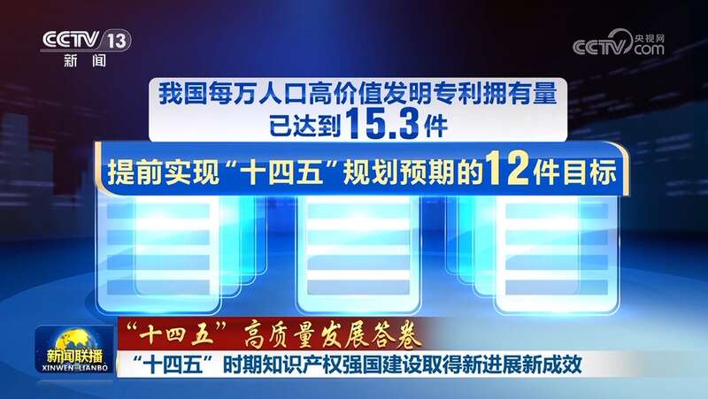 央视网消息(新闻联播):7月17日,国务院新闻办公室举行“高质量完成“十四五”规划”系列主题新闻发布会,国家知识产权局相关负责人介绍“十四五”时期知识产权强国建设新进展新成效。