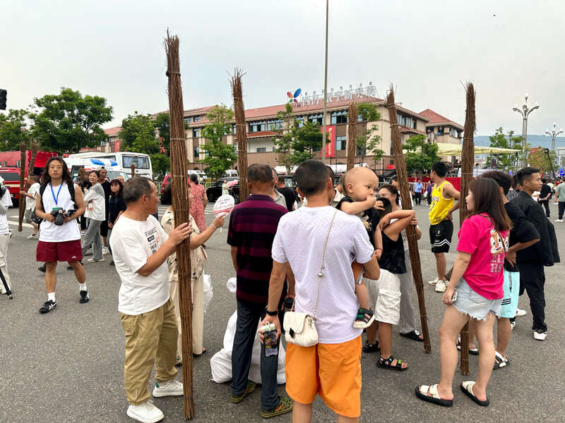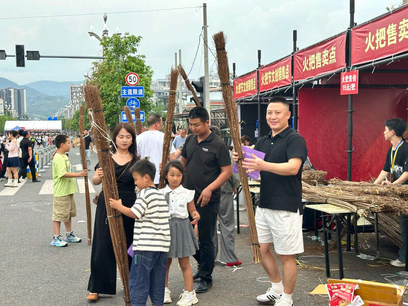 刚刚购买完火把的游客。中青报·中青网记者 陈晓/摄