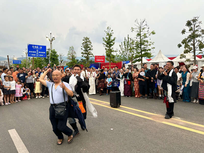 巡演人员邀请游客一起跳舞。中青报·中青网记者 陈晓/摄