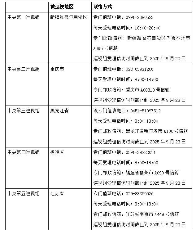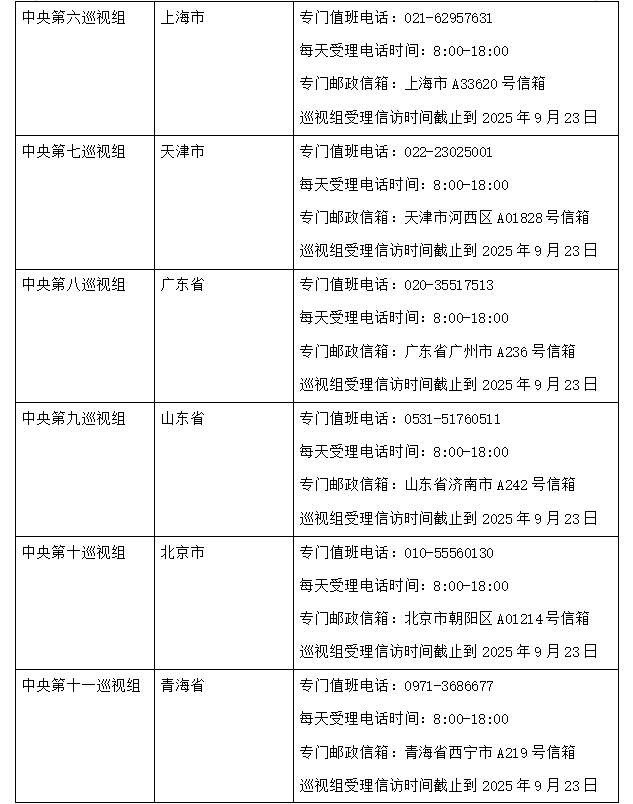 根据党中央关于巡视工作的统一部署,近日,二十届中央第六轮巡视的16个巡视组陆续开始进驻被巡视地区,并公布了联系方式。