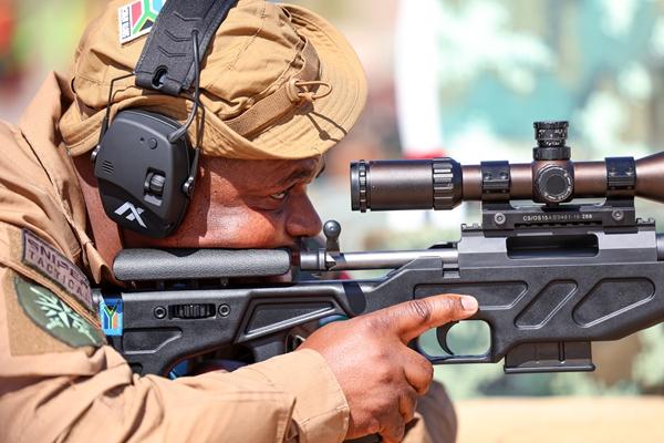 7月15日,“锋刃-2025”国际狙击手射击竞赛在新疆乌鲁木齐武警某训练基地开幕。这是开幕式后,南非参赛队员进行“暗箭刀锋”课目竞赛。侯崇慧/摄