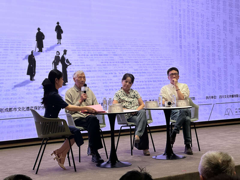 在“漫长的调查——中国营造学社在四川”展览开幕仪式现场,刘敦桢之子刘叙杰,梁思成与林徽因孙子梁鉴、外孙于晓东、外孙女于葵,刘敦桢之孙刘圻,以及文化学者、《漫长的调查》作者萧易进行了分享。