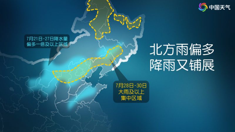 每年的7月下旬到8月上旬,也就是俗称的“七下八上”,是华北、东北等地主雨季。华北、东北地区,甚至黄淮以及陕西、甘肃、宁夏部分地区,都将出现一年中最集中的雨。