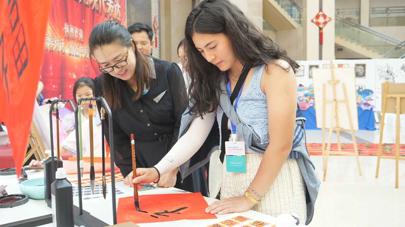 在新疆博物馆,中美青年夏令营营员们了解新疆历史的发展脉络和文化底蕴,真切感受古往今来新疆各族人民团结一心、共建家园的辉煌历程。在新疆大学校史馆,他们一起参观新疆百年学府的发展历程,体会新疆教育事业取得的巨大成就;在昌吉青少年活动中心,营员们尝试学写毛笔字、学剪纸、做手工,体验中华传统文化。