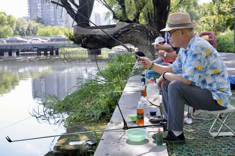 7月29日,北京,市民沿亮马河垂钓。李媛/摄