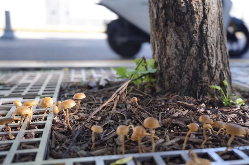 7月29日,北京,暴雨过后,马路旁的行道树下长出菇群。李媛/摄