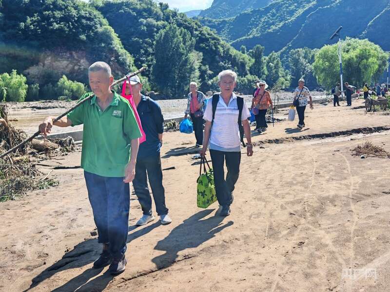7月28日,消防救援力量率先突破,进入碾子湾村运送物资并转移群众。从琉璃庙镇前往碾子湾要经过三处桥梁,这些桥梁全部被洪水冲毁,救援人员只能就地取材,利用被洪水冲倒的树木和绳索在后河套村搭建木桥,打通通往碾子湾村的生命救援线。当天,消防人员累计转移被困游客和村民170余人。“那浮桥晃得厉害,可没人敢停步。”一位参与转移的村民回忆道。洪水退去的河岸,还留着被卷走车辆的残骸。