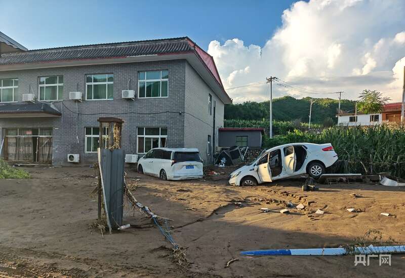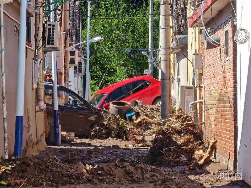 墙壁上近2米高的泥水线,无声诉说着洪水的凶猛。王起春回忆,7月26日晚暴雨突袭,洪水瞬间漫入村内,短短几分钟水流就从膝盖处涨至腰部以上,不少村民家里涌进几十厘米的淤泥,当时积水最深时能漫过胸口。村里的车有的被冲进河道,有的被冲出几公里,有车辆在两排房子中间通道处相撞卡在其中,杂物、树木、淤泥堆叠在一起。