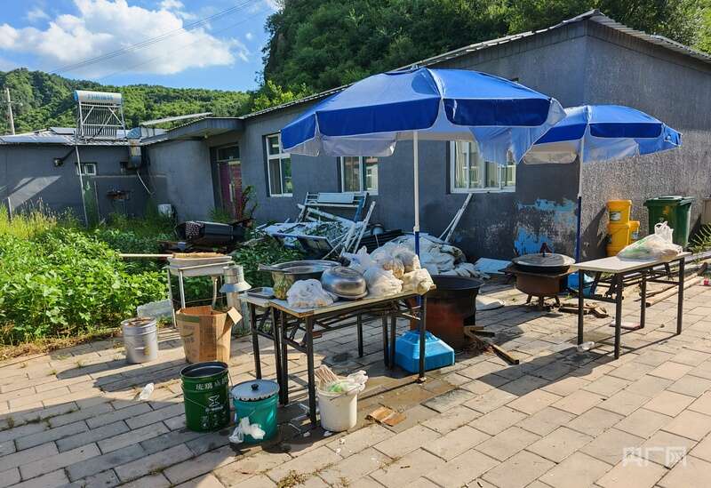 村委会的院子里,放着两台发电机——一大一小沉默伫立。燃油见底,它们成了不敢轻易启用的“摆设”。几张临时拼凑的桌子上,散落着所剩不多的食物;两口大锅的灶膛里,有几根未燃尽的木柴。“没电,只能靠柴火做饭了。”一位村民的声音透着无奈。