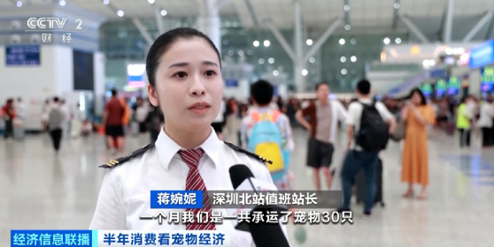 深圳北站值班站长 蒋婉妮:深圳北站从6月20日开通业务以来,一个月共承运宠物30只,到达宠物32只,尤其是现在进入暑期,我们几乎每天都有宠物托运业务订单。
