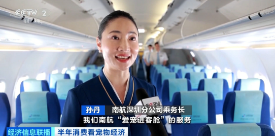 南航深圳分公司乘务长 孙丹:7月1日起,我们南航“爱宠进客舱”的服务已经覆盖超200条直达航线,携带宠物进客舱的旅客,原则上安排在经济舱最后一排靠窗户的座位,宠物需放置在前排座椅下方,当然如果有空位的话,旅客也可以购买联排座位安放小宠物。