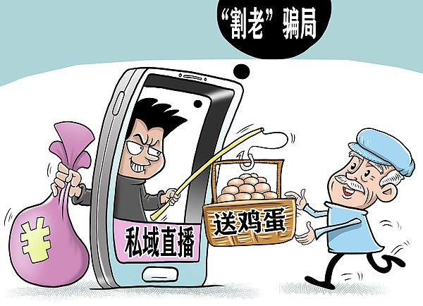 “私域直播”成了坑老的“私人订制”,以“免费领鸡蛋”为诱饵,将传统线下“会销”升级为线上隐蔽操作,专盯老年人钱包进行精准收割。从业者直言不讳地说:他们之前就是做“会销”,就是以旅游等名义,将老人诱骗到封闭的场所里搞洗脑式的推销,之后这种灰色模式因为受到了严厉监管而一度风头不再。想不到的是,“会销”秽土重生,转到线上。其利用互联网的影响力,使得坑老范围扩大——原来“会销”只是针对有限数量的老人,如今网上直播带货可以对更多老年人进行洗脑收割。