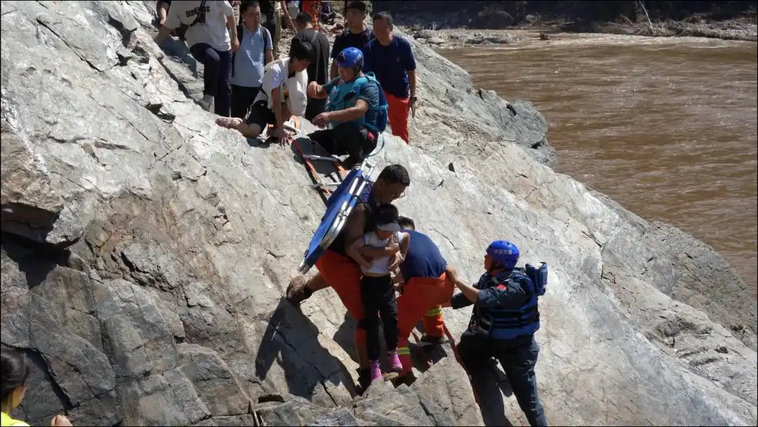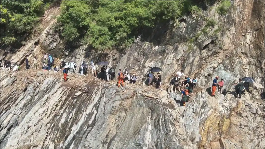 行动能力较强的80余名青壮年,由救援队员全程护送通过危险路段;行动不便的老人、儿童及伤员,在晚间19时简易路桥抢修通行后第一时间开始进行转运,最终救援人员将剩余的300余名“老妇幼”被困群众护送至安全区域。
