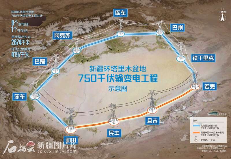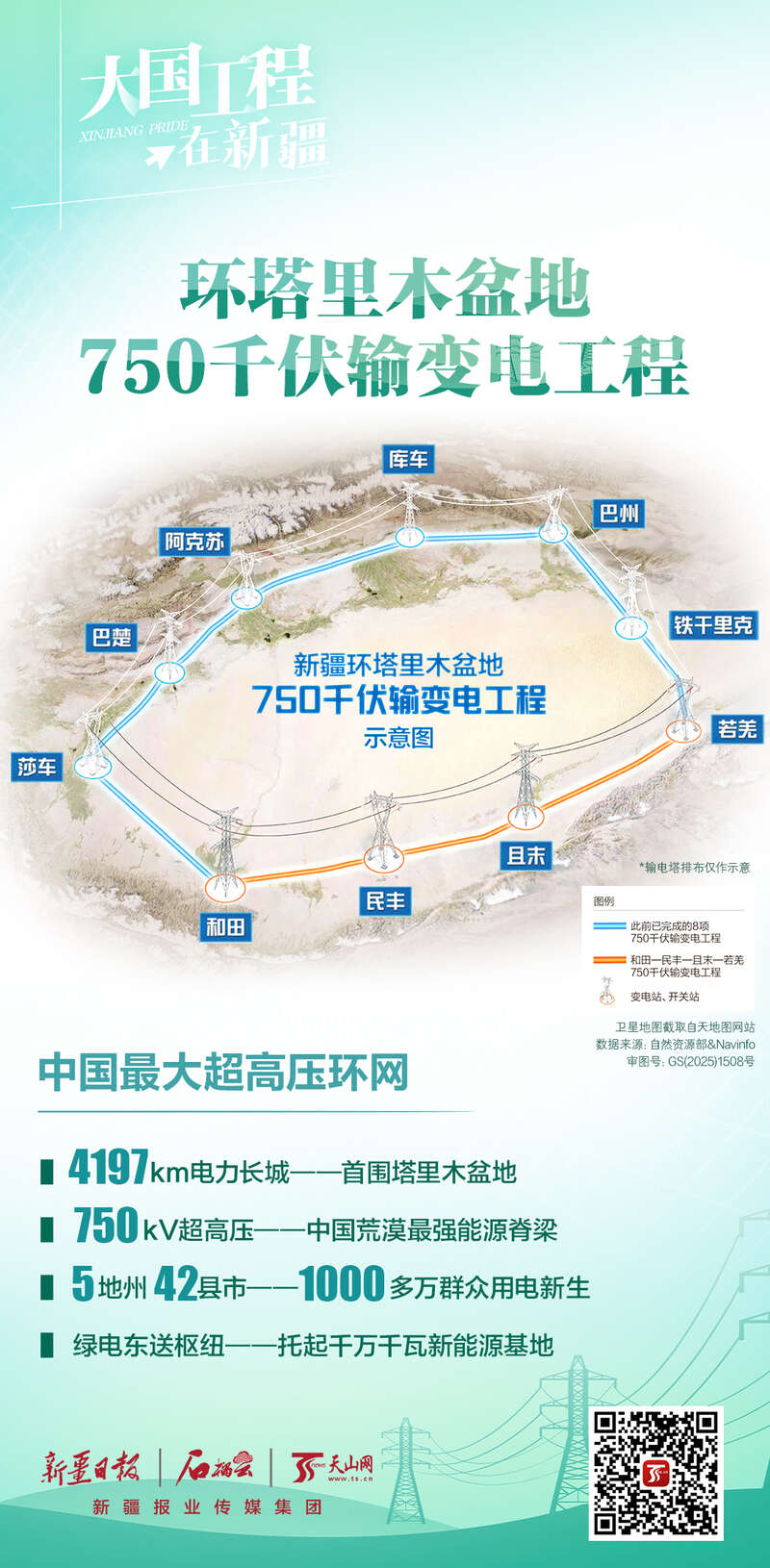 如今,环网的铁塔如一串明珠串联起绿洲与戈壁。它见证着新疆从能源末梢到枢纽的蜕变,更预示着一个更加繁荣稳定的南疆。而这,正是国家支持下,新时代边疆发展的美好缩影。