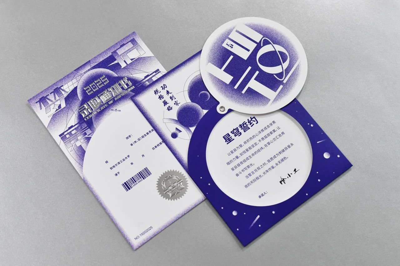 哈尔滨工业大学为2025级本科新生整体准备的“梦想”礼,以“梦启寰宇”为主题,围绕“宇宙、梦想、小卫星”进行设计。外盒正面用开普勒第三定律,呼应小卫星梦想遨游计划的星体运动定律。