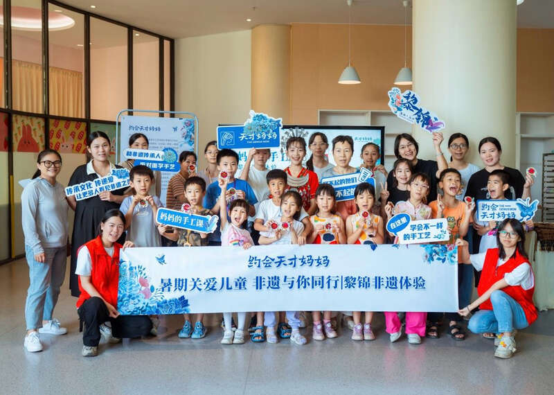中国青年报客户端讯(中青报·中青网记者 林洁)近日,广州市儿童活动中心变成欢乐的黎族文化乐园。展厅内,色彩斑斓的黎锦作品格外引人注目,精美的传统纹样与独特的编织工艺,向观众讲述着海南黎族悠久的文化传承。当天,“暑假关爱儿童 非遗与你同行”主题公益活动在这里开展,为大小朋友们带来一场特别的非遗体验。
