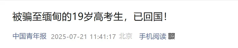 据彭某轩此前向佤邦司法委工作人员陈述,其因高考后想寻找暑假工作,被网友以“主播岗位”诱骗至云南临沧市沧源县,后被犯罪分子带至缅甸境内。