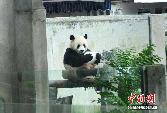 重庆高温天气持续 大熊猫抱冰砖享受清凉