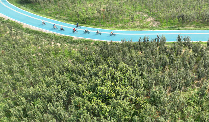 2024年7月10日,自行车爱好者在石家庄市环城绿道北线骑行休闲。近年来,石家庄依托滹沱河、环城水系等优质景观资源,通过架设桥梁、提升景观和完善绿地等措施,打造景美、智游、畅达的城市绿道健身体系,加强环城绿道与中心城区串联衔接,方便市民无障碍步行或骑行,提升群众生活幸福感和获得感。