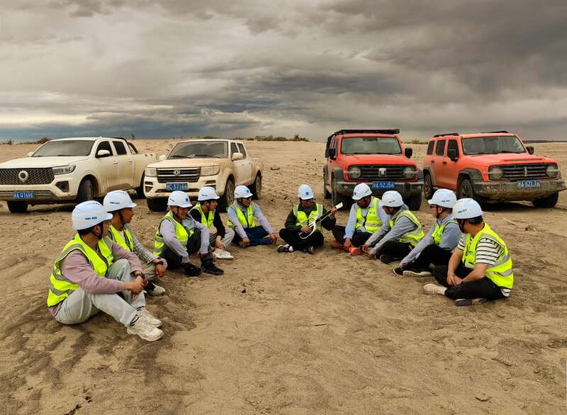 戈壁生活的不易,让团队拧成了更紧的“绳”。项目青年员工也总能苦中作乐,在结束了一天的现场工作后,暮色的荒漠中,会举办一场别开生面的歌会,让荒漠勇士们于繁忙工作之余得到心灵慰藉。