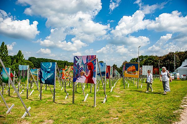 当地时间2025年8月10日,荷兰赫鲁斯贝克,名为“色彩场域表演”的艺术展展出336幅画作,其数量代表了诺曼底登陆日与纳粹投降日之间的天数。