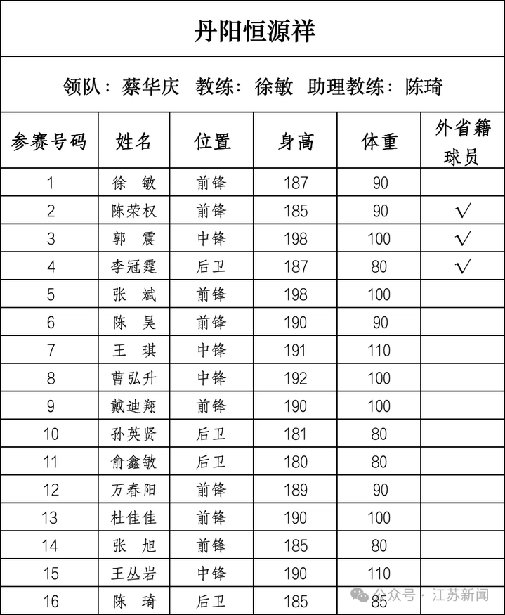 丹阳恒源祥:平均年龄28.3岁,平均身高188.6cm。2021年四强。