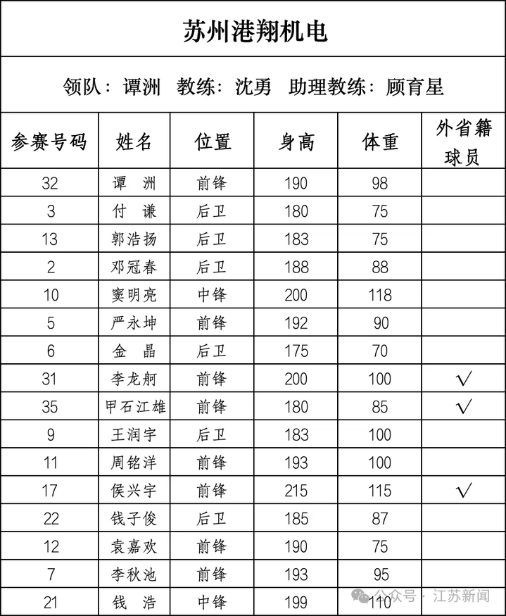 苏州中诚体育:平均年龄26.6岁,平均身高191cm。2019年、2020年、2021年八强。