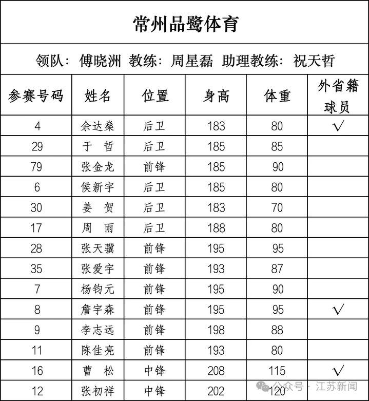 常州品鹭体育:平均年龄25.9岁,平均身高192cm。2021年和2023年亚军。
