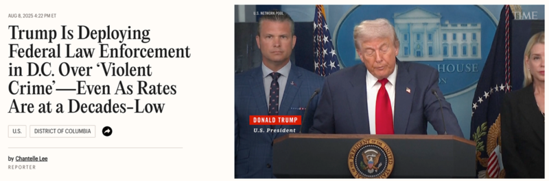 由于华盛顿特区治安处于“趋势向好但基数仍高”的尴尬区间,既能被解读为改善,也能被渲染成危机,因此在这一背景下,特朗普宣布30天接管特区警局便立刻产生了多重政治效应。