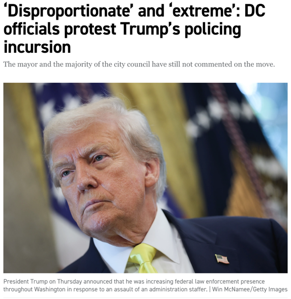 中期看,这一动作直接触碰了“谁来指挥DC警察”的敏感问题。总统虽然可以根据《本地自治法》的紧急条款短期接管,但要延长期接管,就必须进入国会授权程序。这意味着两党接下来将从舆论战转向法律条文和预算的硬碰硬——民主党会指责白宫“越权干预自治”,并寻求司法反制;白宫则可能用增加联邦治安资金、改变检诉政策等方式,推动事实上的“联邦优先”。