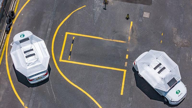 暑期学车迎“烤”验 驾校教练车装遮阳伞防晒