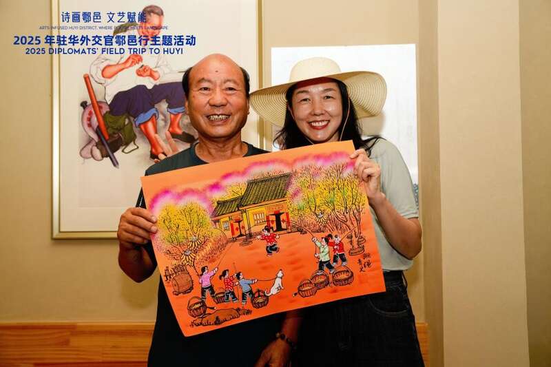 在由村民院落改造的艺术村长之家,摩洛哥王国驻华大使馆政治参赞布黛娜·萨布吉抚过夯土墙的凿痕,仔细聆听驻村艺术家讲述如何让老屋在木格光影中重获新生;而当伊拉克共和国驻华大使馆文化参赞莫哈纳德·纳贾赫·贾瓦德·阿尔舒鲁非在户县农民画终南分馆接过村民递来的画,“艺术无界,欢喜相通”的顿悟得到最佳诠释。