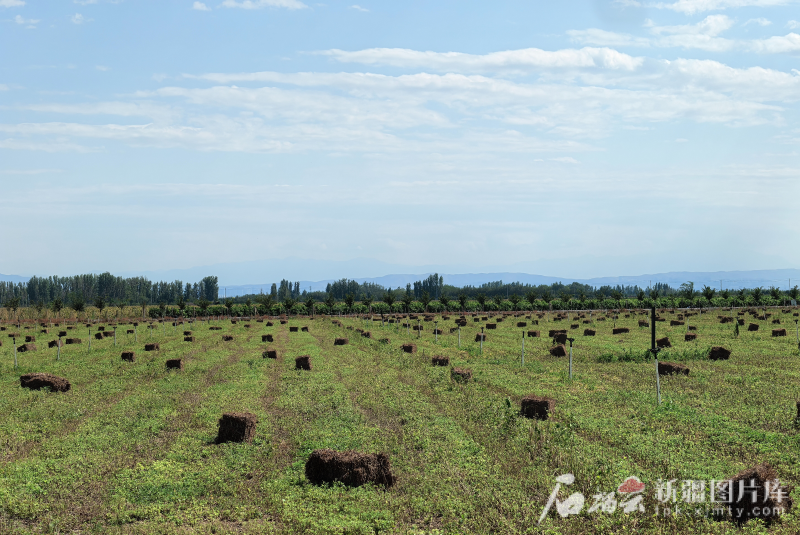 8月11日,“对口援疆 潮涌天山”主题采访活动成员在十三户村看到,今年第二茬艾草已经收割完毕,一个个艾草垛堆放在田地里,有的艾草已发出新的枝叶,孕育着下一茬艾草的生长。