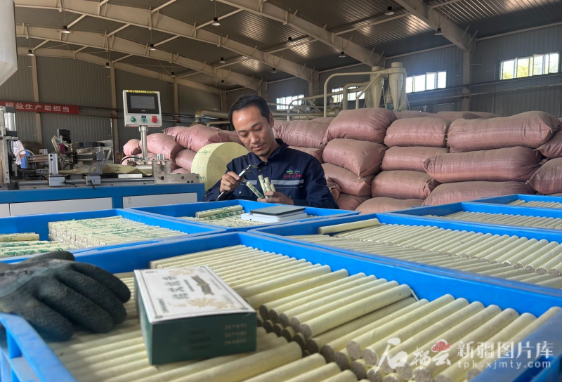 在泉州援疆的支持下,今年3月10日艾草加工厂正式投入生产,历年库存的优质艾草被“吃”进去,最终成了一根根艾绒条。
