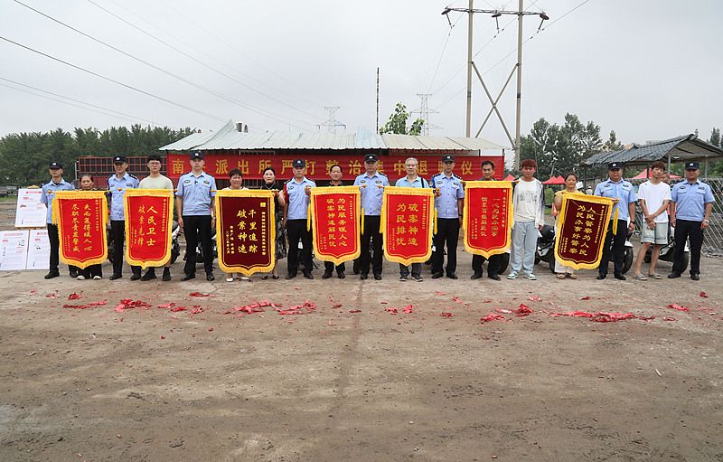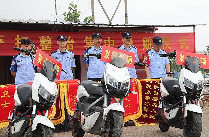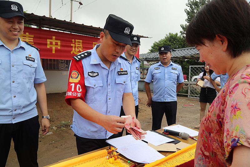 2025年8月13日,山东省临沂市,郯城县公安局刑事侦查大队联合南关派出所在集市举行严打整治集中退赃仪式,将近期快侦快破、快速追回的被盗物品发还给受害群众。
