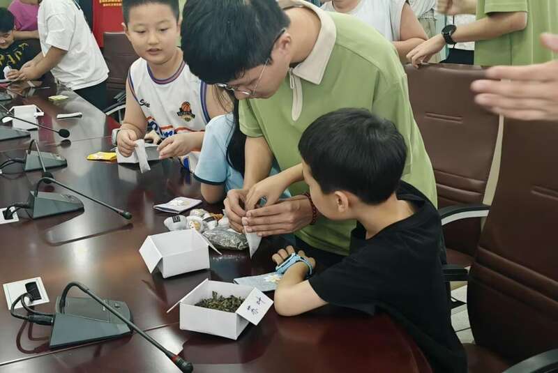 志愿者还曾前往安徽中医药大学的AI+中医药体验中心,了解智能舌诊仪以及基于中医AI智慧诊疗平台的“云诊365”app;在安徽某制药公司,志愿者看到了传统工艺与现代科技相结合的产品;在亳州市某中药公司,他们还学习如何辨别中药真伪。志愿者把了解到的这些中医药知识,采用生动有趣的方式讲述给社区儿童,并且带着孩子们一起制作驱蚊香包等中药香囊,感受中医药文化。