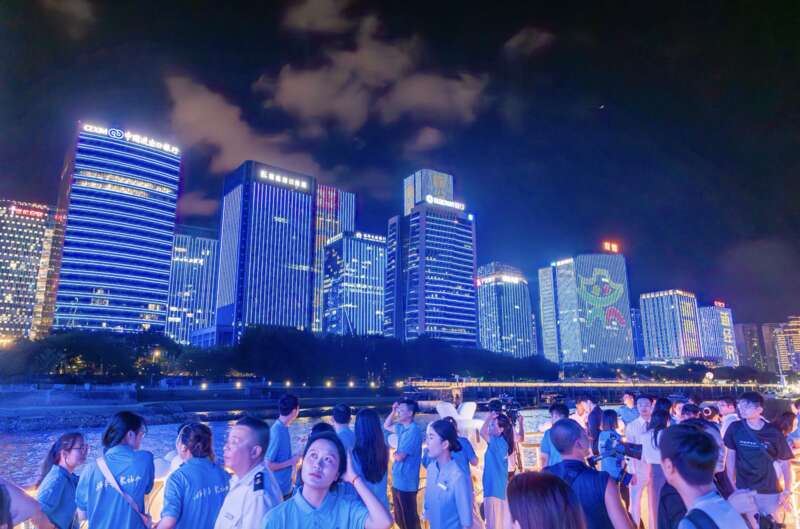 “好年华 聚福州”研学学子在闽江两岸观看灯光秀。团福州市委供图