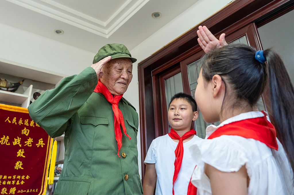 2025年8月14日,江苏省南通市通州区金沙街道联合通州小学开展“传承抗战精神 赓续红色血脉”主题教育活动,社区干部与小学生一起,探访99岁抗战老兵于健老人。通过聆听于健老人深情讲述战斗经历,引导小学生们学习抗战精神,传承红色基因,争当新时代好少年。