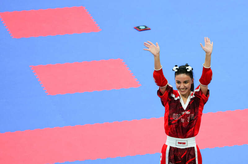 土耳其姑娘克伦奇是重度熊猫爱好者,赢下自由搏击女子半接触50公斤级半决赛后,她从容摘下护具,拿出一枚熊猫发卡戴在头上。而她的背包里,足足塞了13个熊猫纪念品。