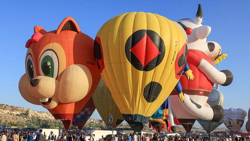 多彩热气球飞过土耳其卡帕多西亚 浪漫如童话世界