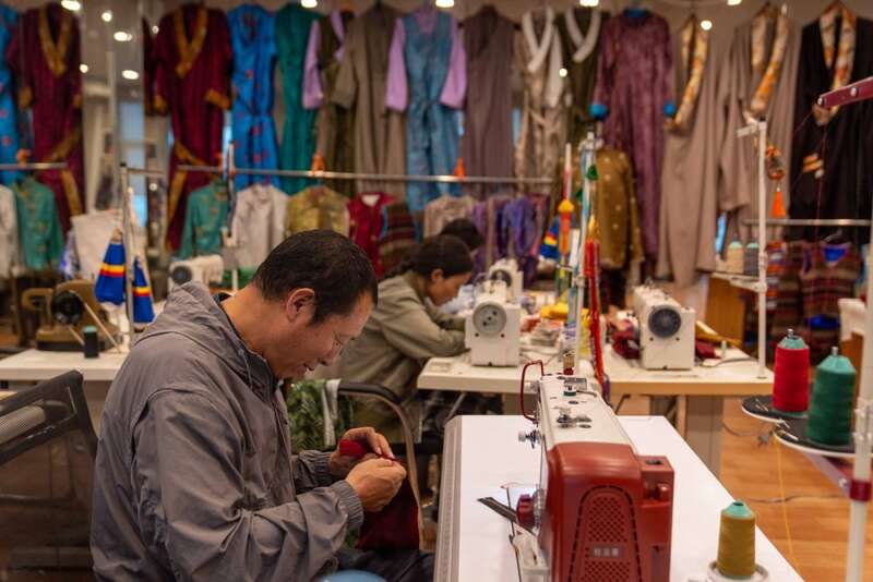 ↑ 8月6日,服装师在制作拉萨服饰。拉萨服饰入选西藏自治区级非物质文化遗产代表性项目名录。