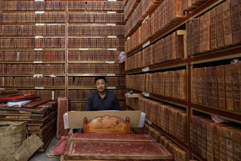 ↑ 8月6日,一名雕刻师在雕刻中。西藏雪巴康雕版印刷制作技艺入选西藏自治区级非物质文化遗产代表性项目名录。
