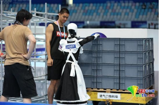 8月15日,2025世界人形机器人运动会进入首个比赛日。本届赛事最大的亮点之一是开设了场景赛,旨在展示不同机器人在不同应用场景中的表现。图为T170D钛虎遥光机器人在物料搬运比赛中顺利完赛。中国青年网记者 杨逸凡/文并摄