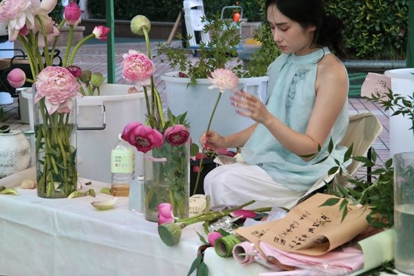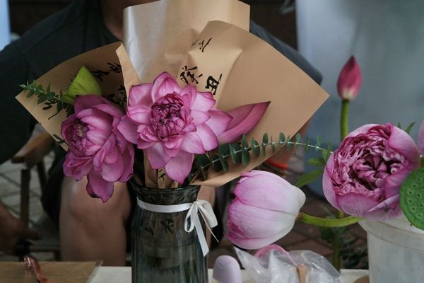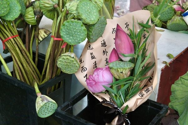 江苏苏州:荷花市集人气旺 “新中式花束”热销