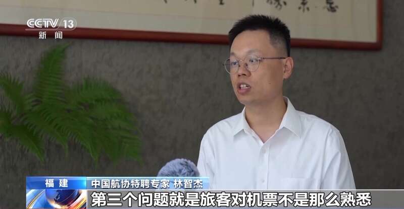 中国航协特聘专家 林智杰:第三个问题就是旅客对机票不是那么熟悉,其实我们能看到大概有40%~50%的旅客每年只坐一个来回,甚至两三年只坐一个来回。不像我们买菜天天买不容易上当受骗,那买机票偶尔买,一不留神就容易上当。所以从产品上、从旅客上、从销售模式、从信息上来讲,确实从根本上会有这样的因素提供了可乘之机。