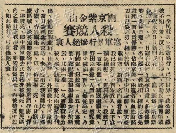 1月25日,《新华日报》以《南京紫金山杀人竞赛》为题,报道了日军杀人竞赛的消息(日本《东京日日新闻》等曾进行过报道),对臭名昭著的“百人斩”竞赛进行了报道。