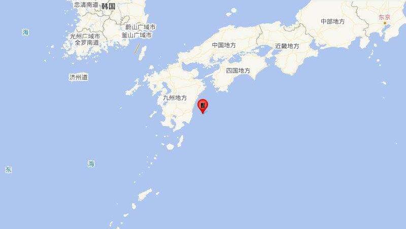 日本九州岛附近海域发生5.7级地震 震源深度10千米