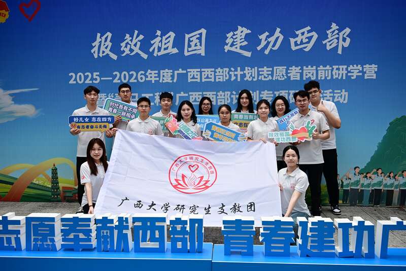 7月31日上午,2025—2026年度广西大学生志愿服务西部计划出征仪式现场,青春誓言铿锵回响。仪式结束后,广西大学第13届研究生支教团(以下简称研支团)成员们带着嘱托与期盼,再次踏上征程,奔赴中越边境的那坡县。他们将接过学长学姐的接力棒,用青春的热忱与智慧,为这片土地的教育事业注入新的生机与活力。